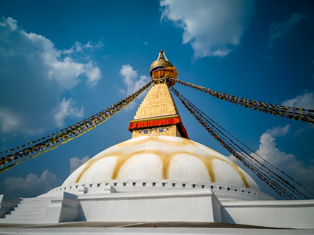 Circle the giant white stupa as monks hum prayers and incense fills the air. The colorful shops sell thangkas, beads, and steaming momo plates, welcome to spiritual chaos in 4K.