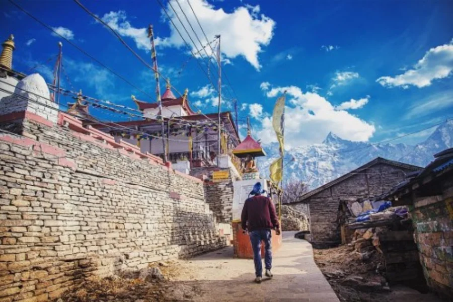 Stroll narrow lanes dotted with slate-roofed houses and traditional prayer flags while locals share legends of the valley.